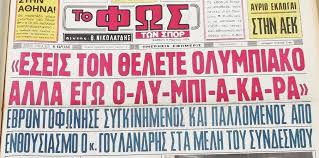 Σε μια συνεδρίαση του διοικητικού συμβουλίου της Ένωσης Ελλήνων Εφοπλιστών, έριξε το παραμύθι: “Έχω συγκλονιστικά νέα. Οι κομμουνιστές θέλουν να πάρουν τον Ολυμπιακό και καταλαβαίνετε λόγω του Πειραιά, θα επηρεάσουν και την ναυτιλία και τους ναυτικούς μας. Θα έχουμε προβλήματα στα καράβια, θα ξανακάνουν τις επιτροπές πλώρης, όπως και στην Κατοχή. Προτείνω να αγοράσουμε την ΠΑΕ από τον ερασιτέχνη Ολυμπιακό”.