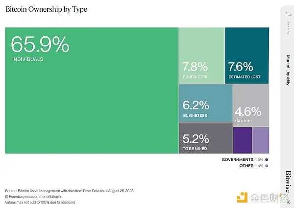Retail dominance persists: About 66% of Bitcoin remains in the hands of non-institutional investors, but liquidity is limited—with only 14.5% of Bitcoin stored on exchanges, while the rest is largely held long-term, requiring significant price increases to incentivize early holders to sell.