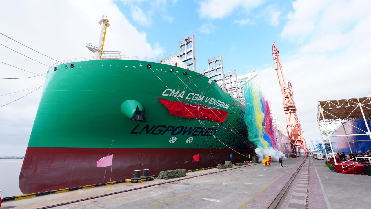 CMA CGM has officially added the CMA CGM VENDOME to its fleet. The 23,000 TEU vessel operates on dual-fuel LNG. Captain Anton Tache commands the ship. Ms. Feng Ping, Vice President of CHERY International, serves as the Godmother.