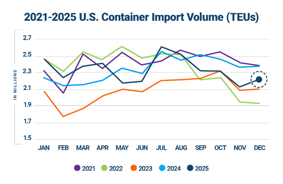U.S. container imports rise slightly in December, 2025 ends below 2024