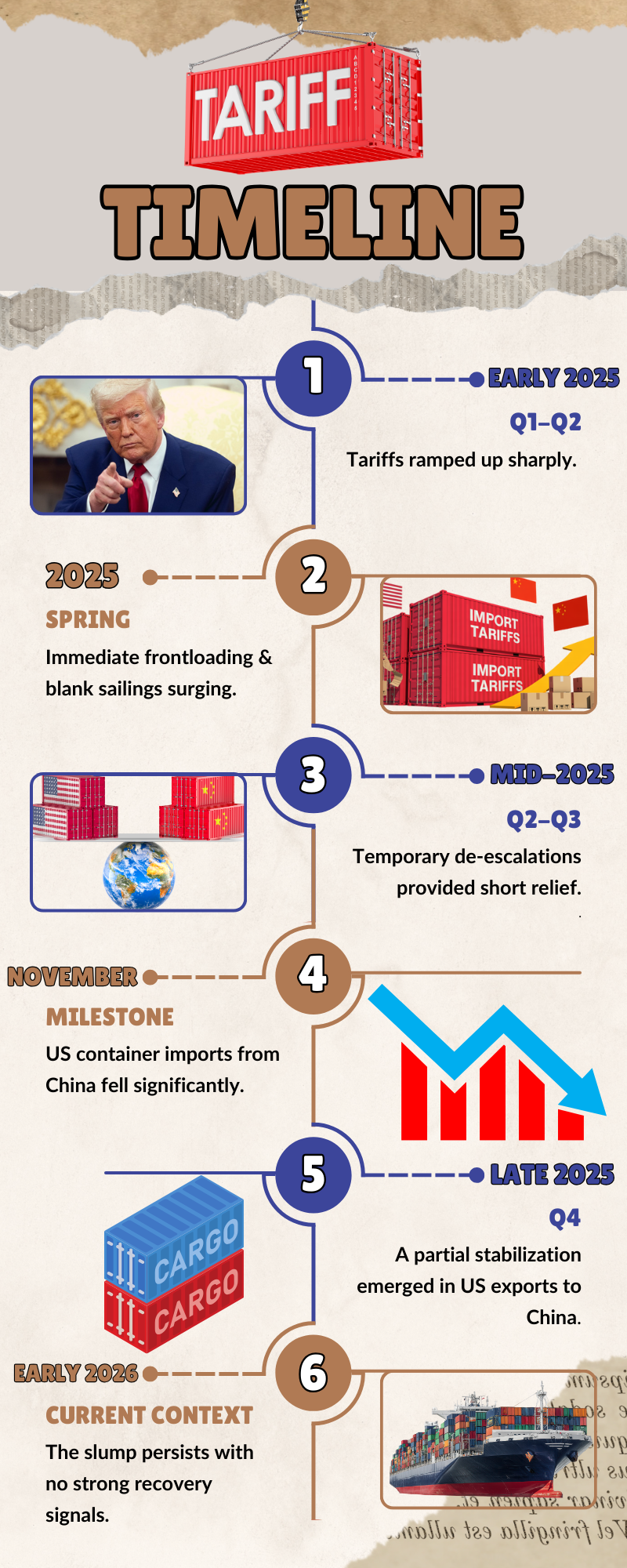 A year of aggressive US tariffs under the second Trump administration has delivered one of the sharpest contractions in bilateral US-China trade since the 2018 trade war, reshaping global shipping lanes and forcing carriers to rebalance capacity across continents.