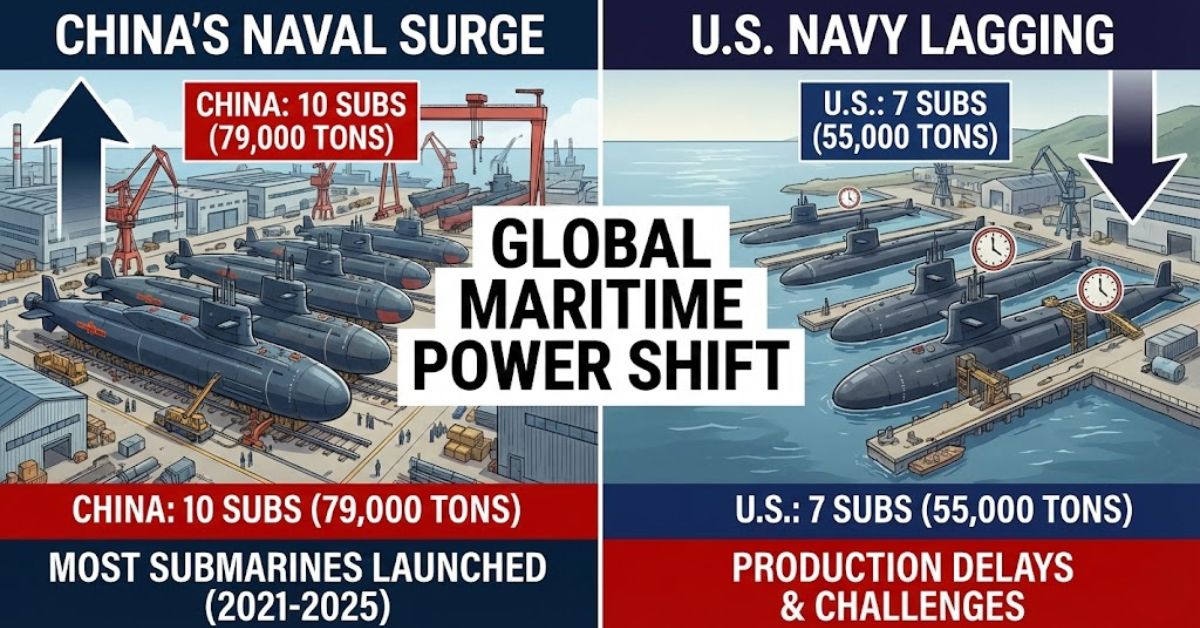 The report states that Beijing has launched more nuclear submarines than the U.S in the last 5 years, from 2021 to 2025.