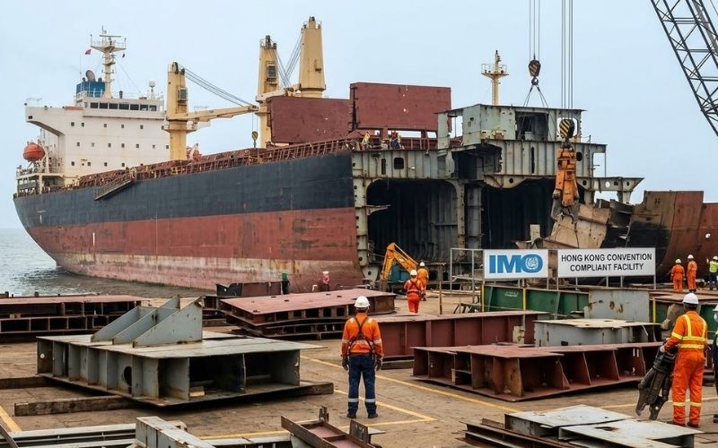 Regulations outlined under the Hong Kong Convention state safe working practices and environment for the workforce involved in ship recycling.