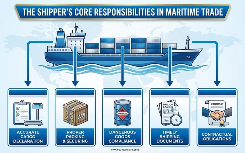 Outlined below are five important responsibilities of a shipper in maritime transport.