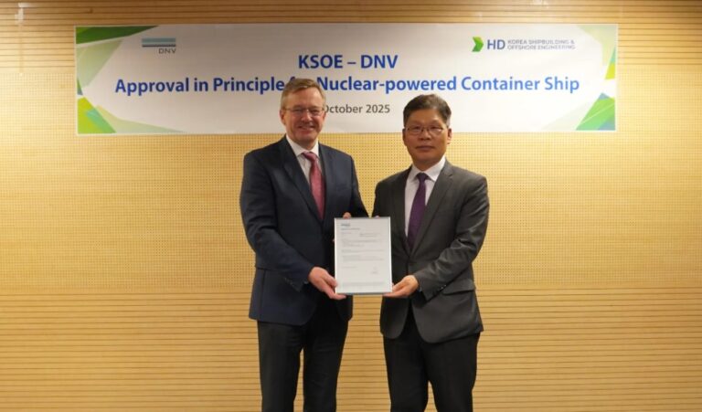 Classification society DNV has awarded South Korean shipbuilder HD Korea Shipbuilding & Offshore Engineering (HD KSOE) approval in principle (AiP) for a new 15,000 TEU container vessel design powered by small modular reactor (SMR) technology.