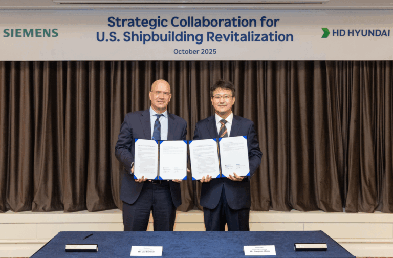 Under the memorandum of understanding (MoU) that the two companies have signed, HD Hyundai and Siemens will reportedly work to combine digital and automation technologies to build smart shipyards and ‘reinforce’ shipbuilding capabilities in the U.S.